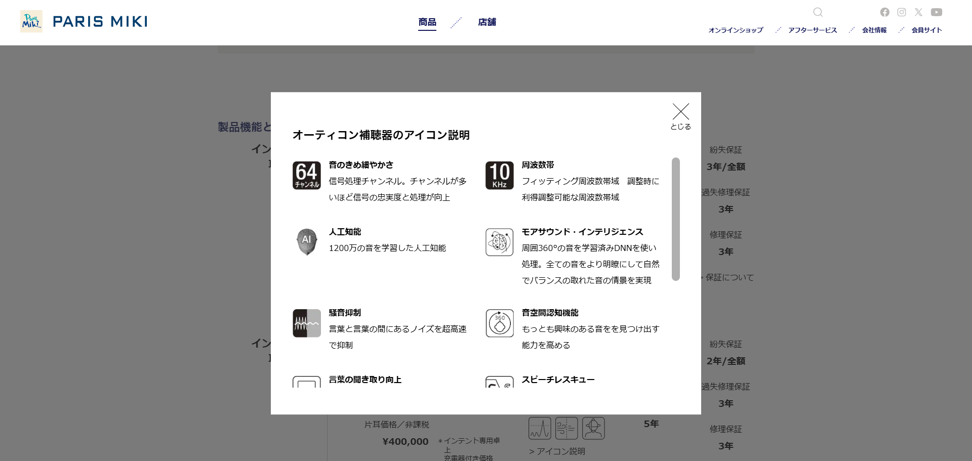 - https://www.paris-miki.co.jp/products/hearingaid/ https://www.paris-miki.co.jp/products/hearingaid/rental/ https://www.paris-miki.co.jp/products/hearingaid/brand/paris-miki-original/ ※抜粋したスクリーンショットとURLのみ掲載していますが、/hearingaid/以下全て担当範囲です。