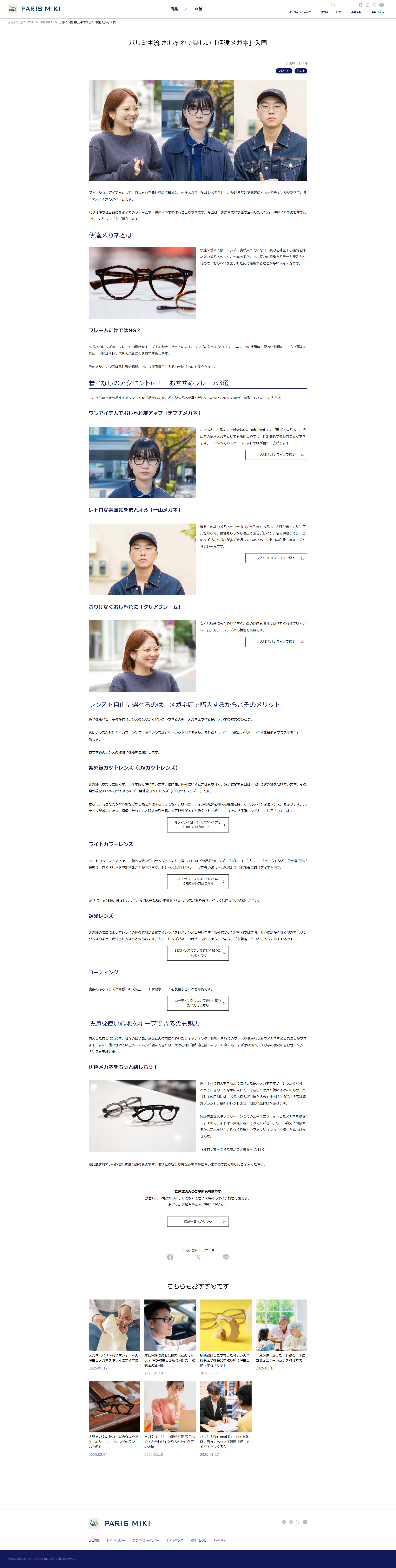 - https://www.paris-miki.co.jp/feature/20250508191554.html https://www.paris-miki.co.jp/feature/ ※一部新規デザインに更新されていない記事があります。